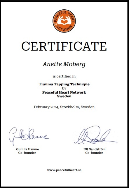 The best thing about the conversations was that I immediately gained confidence in Anette, and I felt that she wished me well. She gave me tools that I could use in a stressful everyday life, and that helped me a lot. The hardest thing was to actually stick to the good habit, when you're used to procrastinating. I learned the importance of being grateful and that it gives strength to write down, and got to work with EFT, which suited me perfectly. I got to try different things, and talk about my difficulties. I will continue with both gratitude journal and EFT. I experience Anette as warm and talented, and that she with care for me and adapted to my person and needs gave me good tools to use to reduce stress and negative thoughts. Thank you so much Anette, you are a gem!