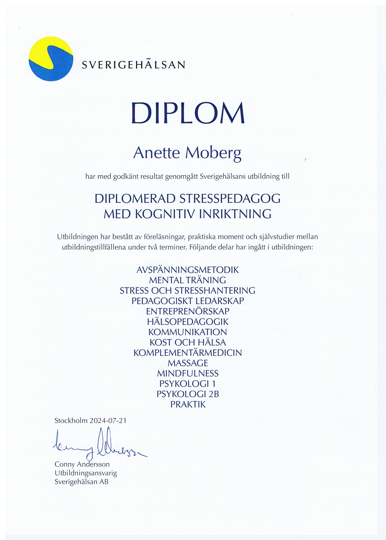 Today, I run Anettes Livskunskap AB, where I offer coaching, lectures, and tailored support to individuals and organizations looking to build well-being that lasts.