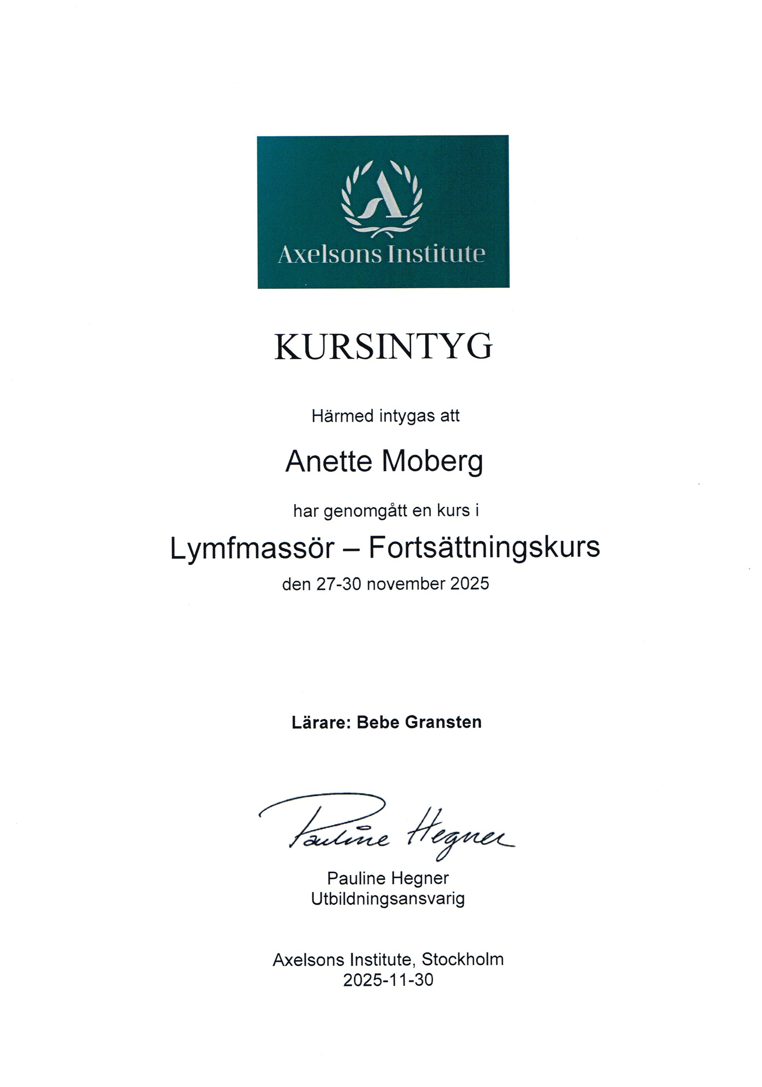 "Jag testade lymfmassage för första gången och är väldigt nöjd! Behandlingen var både skön och avslappnande. Anette var professionell, informativ och tog sig tid att förklara vad som gjordes och varför. Kände mig trygg och väl omhändertagen under hela besöket. Rekommenderas varmt!"